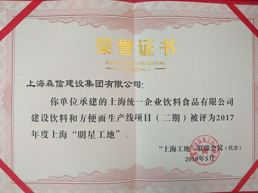 本次共評(píng)選出108個(gè)項(xiàng)目為2017年度上海“明星工地”,上海森信承建的“上海統(tǒng)一企業(yè)飲料食品有限公司建設(shè)飲料和方便面生產(chǎn)線項(xiàng)目(二期)”獲上海市“明星工地”殊榮,三分公司經(jīng)理于宏明代表公司上臺(tái)領(lǐng)獎(jiǎng)。