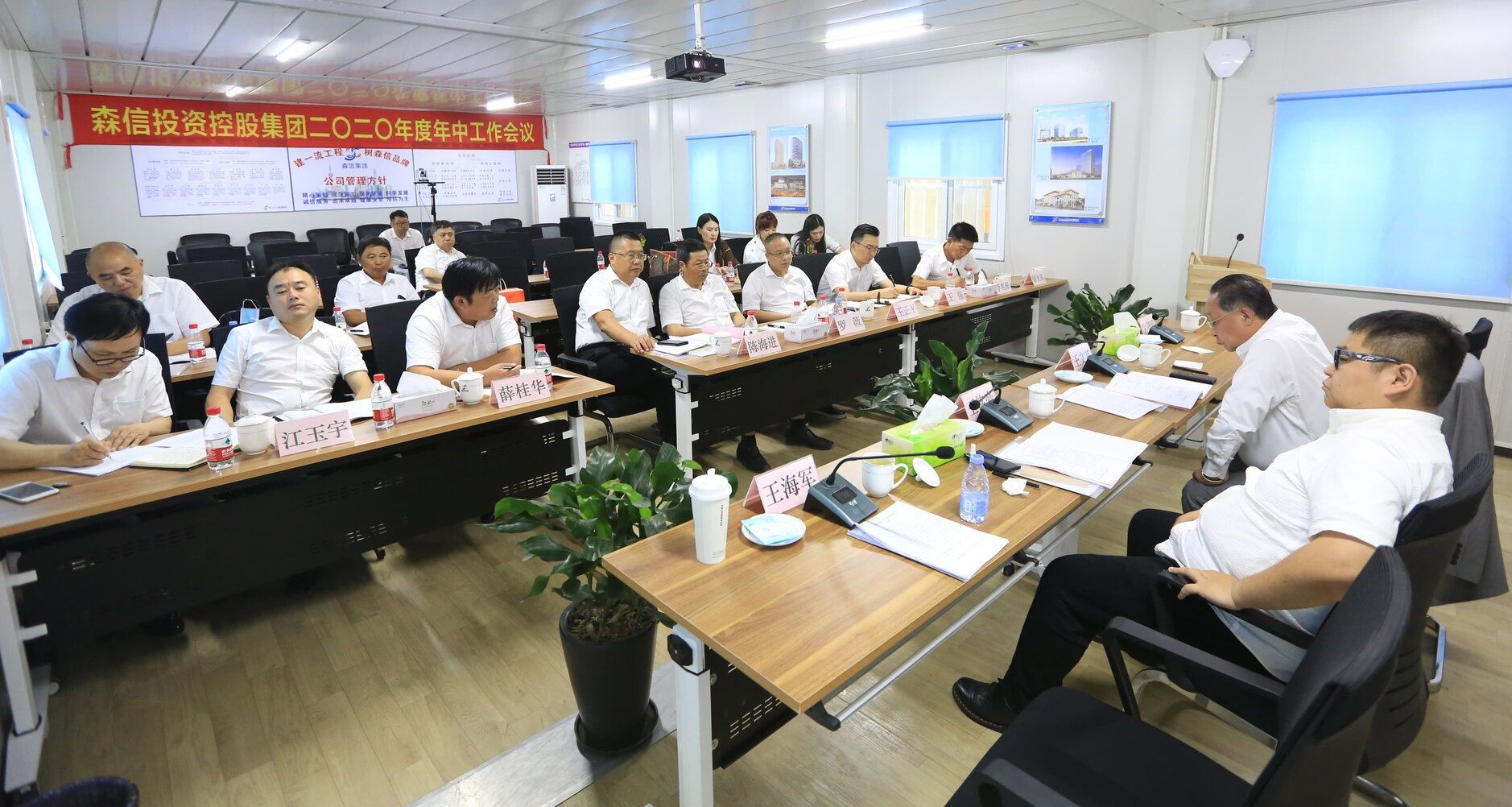 2020年7月11日,森信投資控股集團(tuán)2020年度年中工作會(huì)議在海門路630號(hào)項(xiàng)目部隆重召開。集團(tuán)董事長(zhǎng)王文其、總裁王銘豪、副董事長(zhǎng)朱璧琨、副總裁王海軍出席了會(huì)議。集團(tuán)下屬各分、子公司負(fù)責(zé)人、員工代表共51人在主會(huì)場(chǎng)參加會(huì)議;建設(shè)集團(tuán)、天津、濟(jì)南、湖南長(zhǎng)沙分會(huì)場(chǎng)以視頻會(huì)議方式同步參會(huì)。