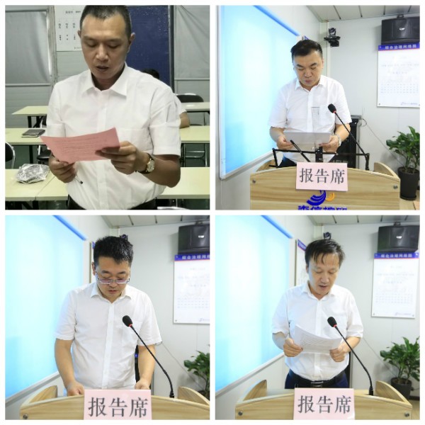 其次,由天津南益名悅灣置換地項(xiàng)目經(jīng)理劉龍虎、總經(jīng)理助理/第六分公司執(zhí)行經(jīng)理江玉宇、預(yù)算管理部副經(jīng)理劉敬、合約采購部副經(jīng)理張建峰分別作表態(tài)發(fā)言。