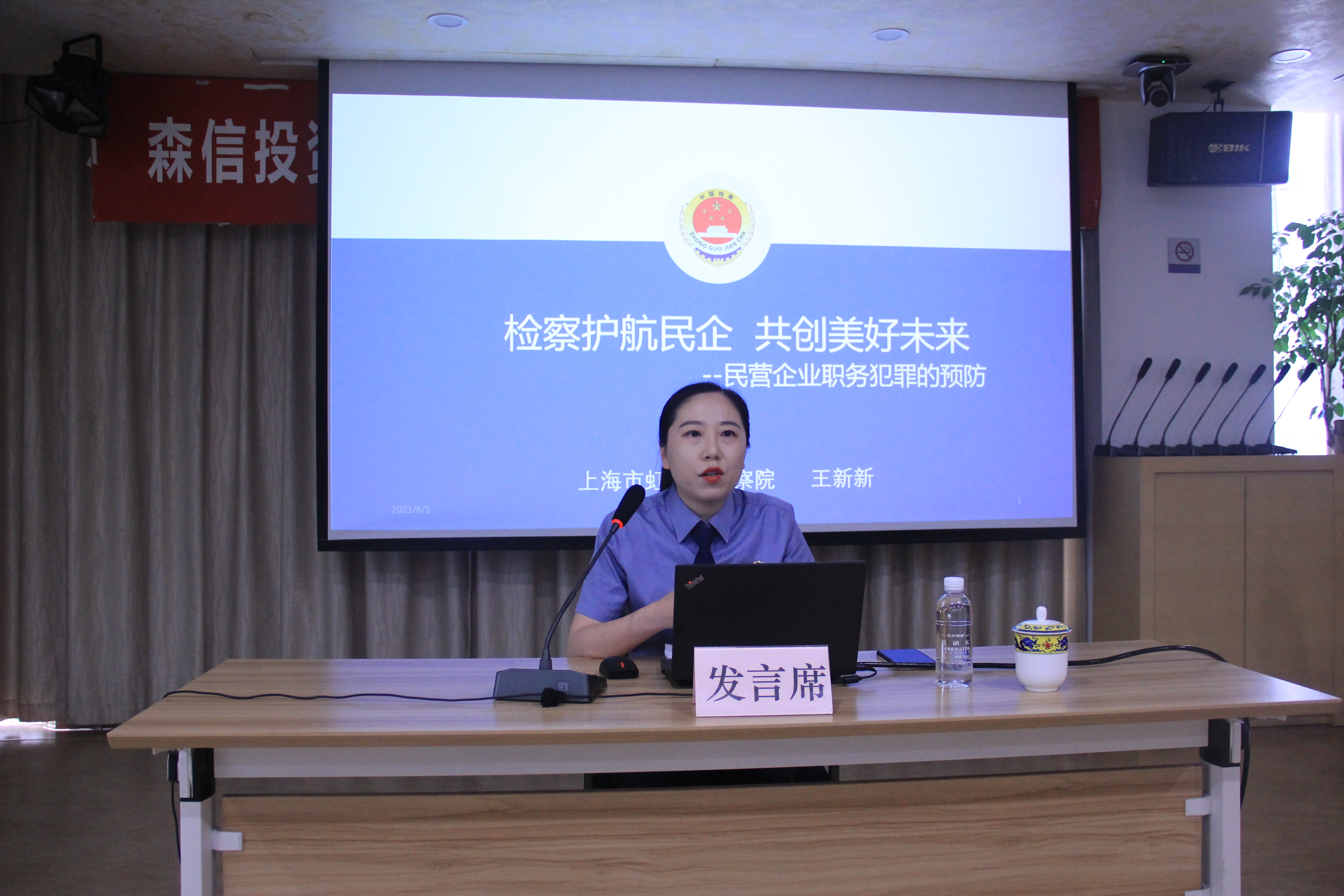 作為森信建設(shè)黨支部“心向黨·再建功—慶祝建黨百年系列活動(dòng)”的一部分,6月5日下午,公司支部特邀虹口檢察院第一檢察部副主任、上海市優(yōu)秀公訴人王新新檢察官在控股一樓會(huì)議室作了《檢察護(hù)航民企/共創(chuàng)美好未來》預(yù)防職務(wù)犯罪專題講座。