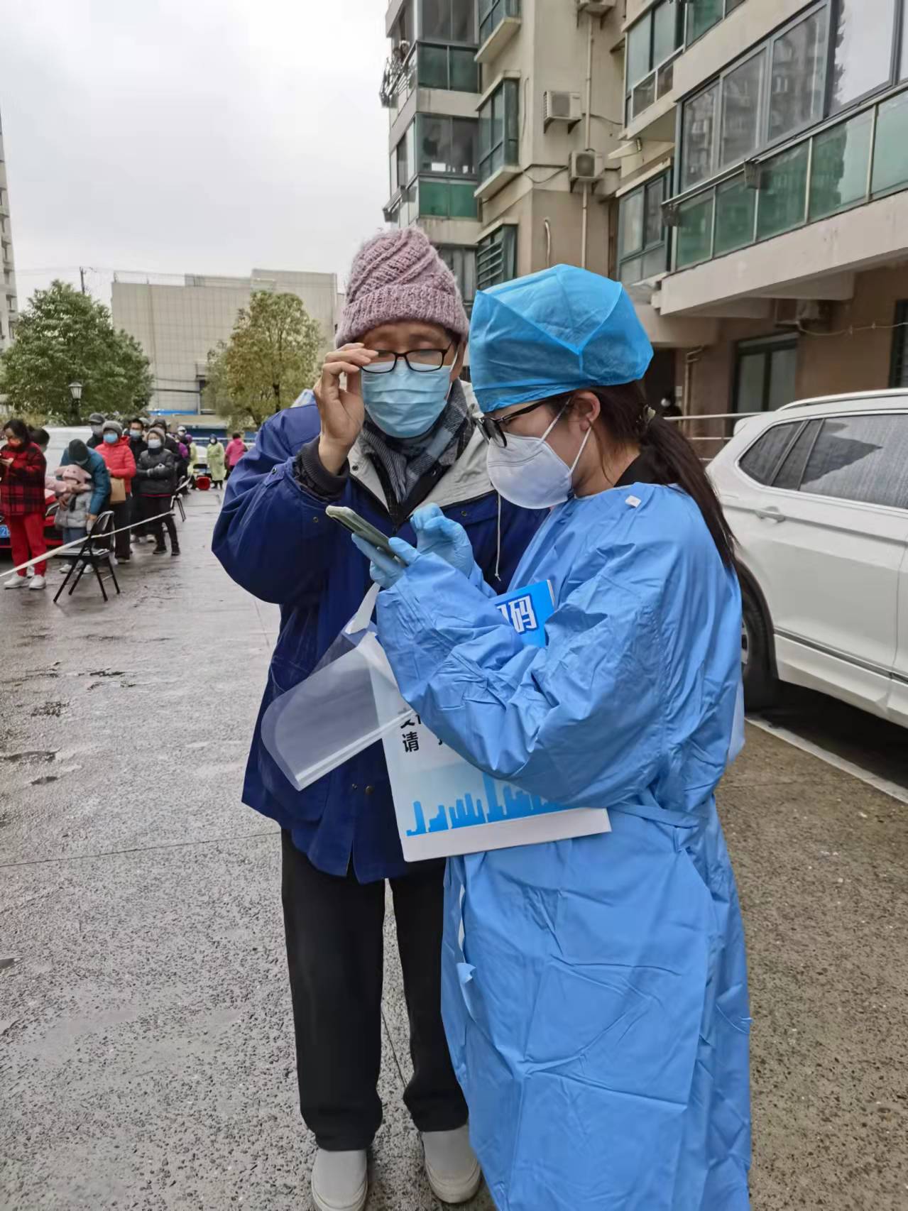 網(wǎng)格化篩查活動中,森信人聚如炬火。志愿者小隊對口支援虹口曲陽路街道上農(nóng)二小區(qū)、曲陽名邸,協(xié)助近4000余名居民順利完成核酸檢測采樣。志愿者們提前熟悉工作程序,嚴格工作紀律,熟練“健康云”APP操作,懷著滿腔的熱忱、飽滿的精神、耐心的引導,全身心地投入到志愿服務中。