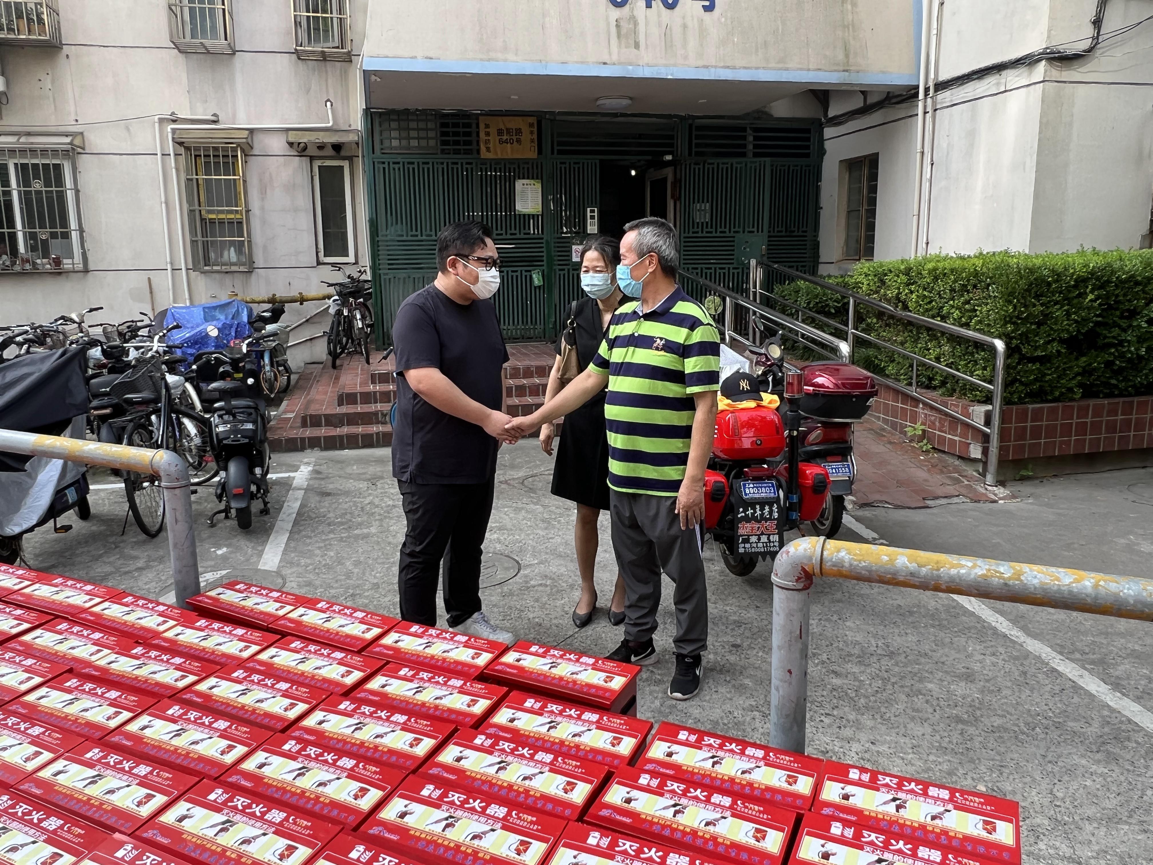 7月21日上午,虹口區(qū)人大代表、集團(tuán)總裁王銘豪向赤三居委捐贈(zèng)了168具滅火器及配套器材箱,曲陽(yáng)路街道黨工委副書記陳曉峰出席捐贈(zèng)活動(dòng)。