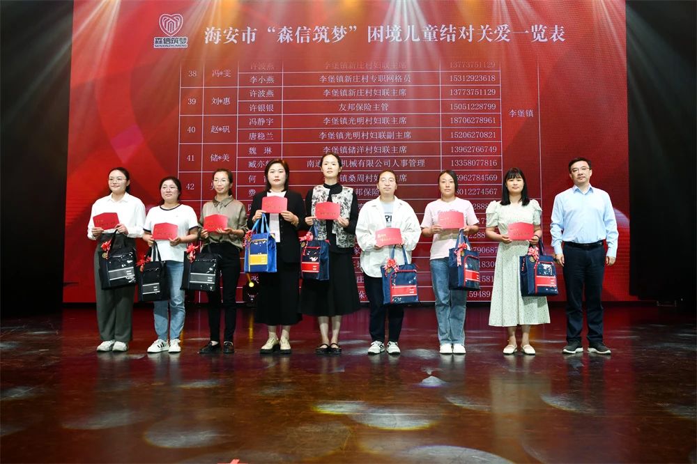 6月1日,“攜手筑夢共護成長”——海安市困境兒童關(guān)愛行動暨“森信筑夢”困境兒童助學(xué)關(guān)愛基金首發(fā)儀式隆重舉行。
