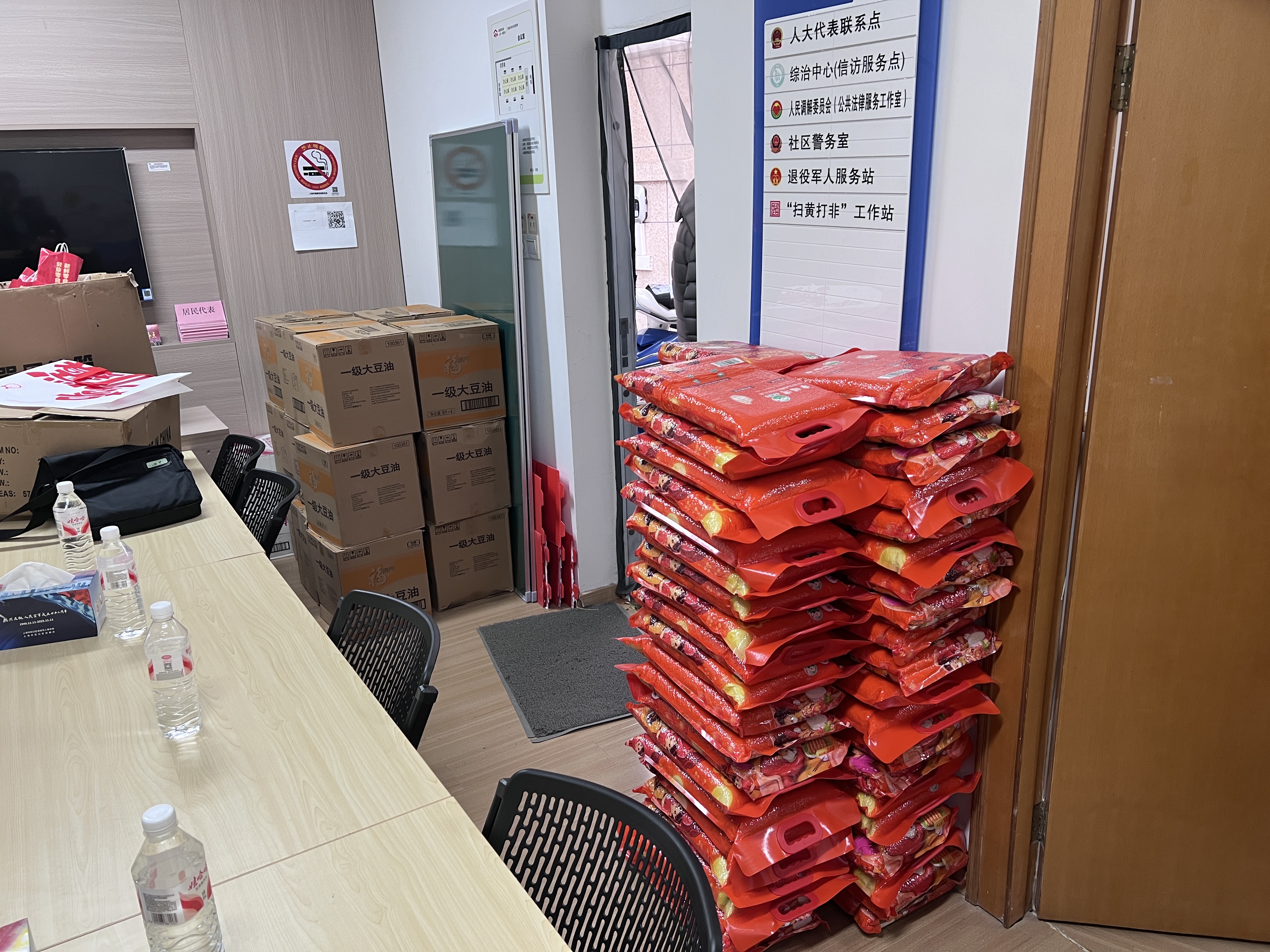 在慰問現(xiàn)場(chǎng),王銘豪總裁與社區(qū)工作人員親切交流,詳細(xì)了解了困境家庭的生活狀況與實(shí)際需求,并代表集團(tuán)捐贈(zèng)了大米、食用油等過節(jié)物資,助力他們度過一個(gè)溫暖祥和的佳節(jié)。